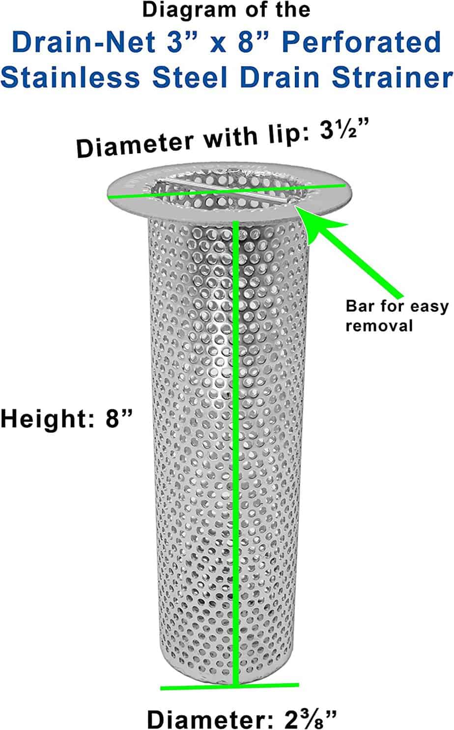 Perforated Stainless Steel 3″ Drain (8″ Long)