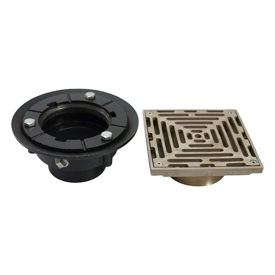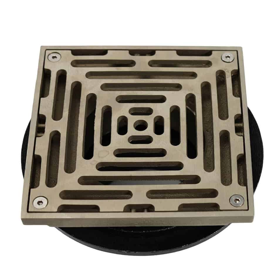 Cast Iron Adjustable Foor DrainW/Square Bronze Stainer