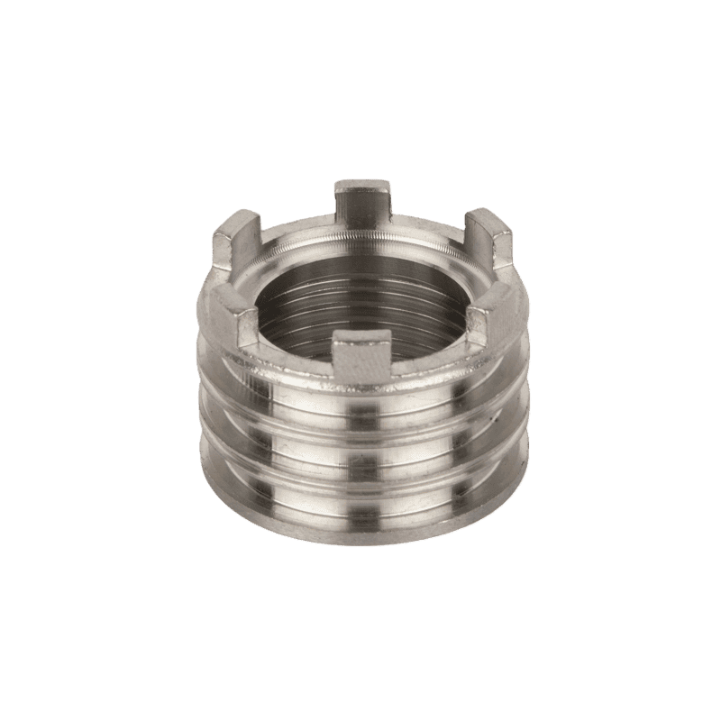 - Next, we stamp reinforcing ribs or engaging teeth on the outer wall. These include anti-slip teeth, grooves, or ring patterns. They help the insert lock tightly with PPR after injection molding. We then pre-process the threaded end. We thicken, compress, or chamfer the area to be tapped. This strengthens the thread and avoids cracking or deformation later.