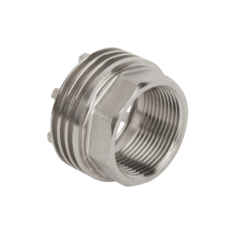 This brass female reducer is used to connect pipes of different sizes in a piping system. It allows large and small male-threaded pipes, valves, or equipment ports to be joined through different internal thread sizes on each end. The outer body is shaped with a hex or octagonal profile. It fits common thread standards such as BSPP, NPT, and G threads. This fitting maintains a secure and easy-to-service connection.