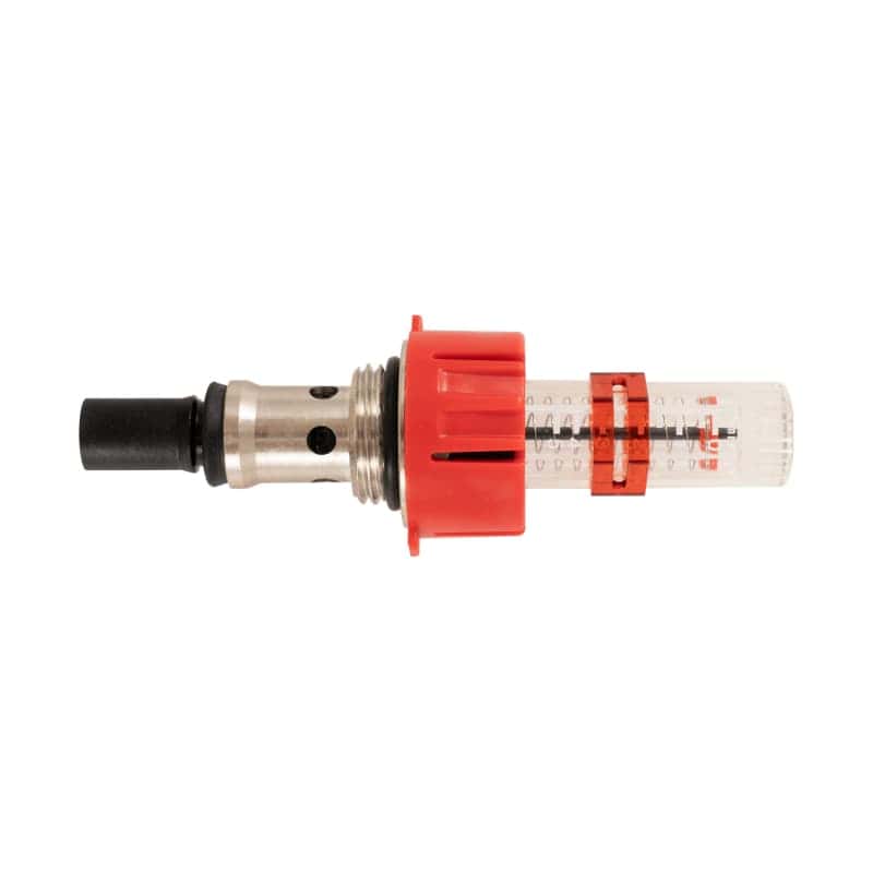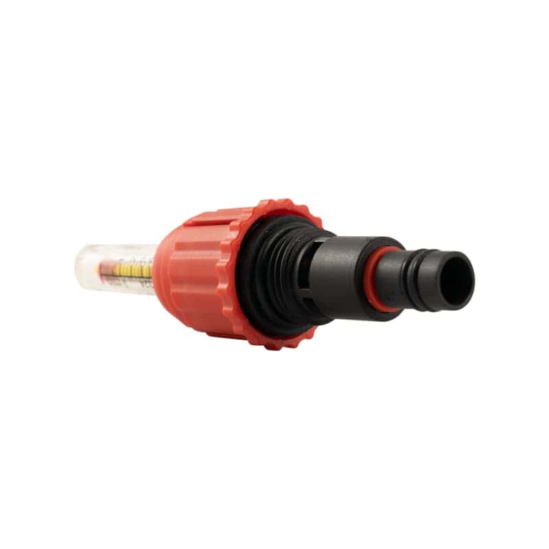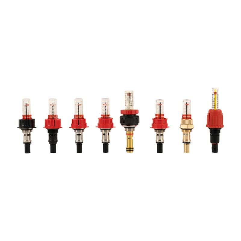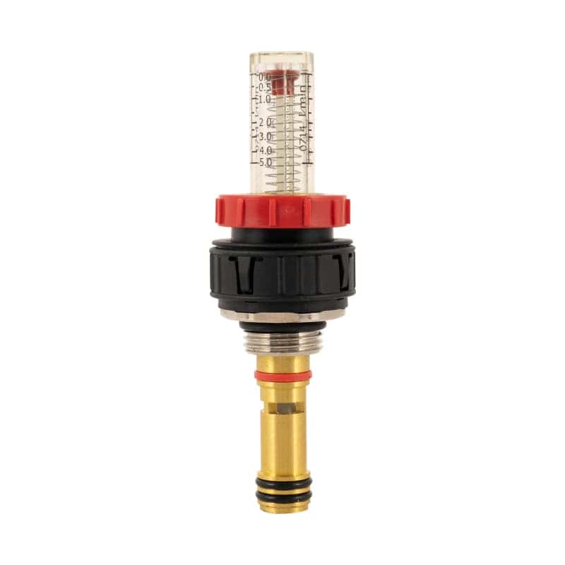 - The flow meter features a removable sight glass