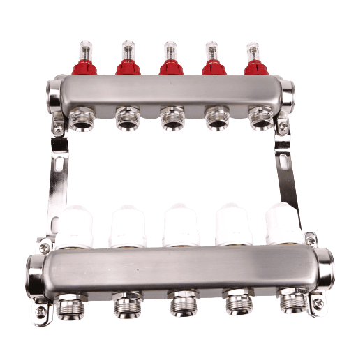 - The Manifold connects the heat source – a boiler, heat pump, or other – with the water underfloor heating circuits, regulates the incoming water temperature via the Mixing Unit and distributes this warm water throughout the floor circuits’ energy-efficient heating system.